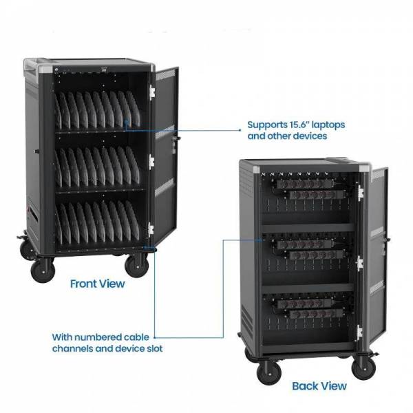 | Características | - Material: Acero laminado en frío de calibre 18 de alta calidad - El paquete incluye: Carro / Cable de alimentación de CA / Llaves - Gestión de cables - Sistema de carga: detección inteligente de energía - Dimensiones de la ranura del dispositivo: 422 × 34,3 × 286 mm - Completamente ensamblado - Humedad de funcionamiento: 20% a 80% RH - Temperatura de funcionamiento: -10°C a 40°C - Humedad de almacenamiento: 20% a 90% RH - Temperatura de almacenamiento: -40°C a +60°C Dimensiones y peso - 600 x 580 x 1127 mm |