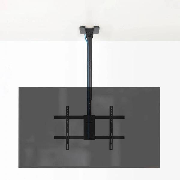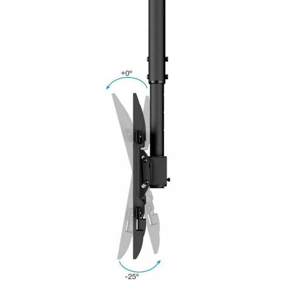 | Características | - Pantallas soportadas: 43'-86' - Compatible con VESA: Máximo 600 x 400. Mínimo 200 x 200 - Peso máximo soportado de pantalla: 60 kg - Ángulo de inclinación: +0°/-25° - Ángulo de giro: +180°/-180° - Ángulo de nivelación: +3°/-3° - Distancia de techo: 485-925 mm - Apto para techos inclinados: +60°/-60° - Sistema de organización de cables - Compatible con pantallas curvas - Color: Negro - Material: fabricado en acero de alta calidad - Peso: 5,35 kg. - Medidas del embalaje: 437 x 255 x 168 mm Contenido del Paquete - 1 x Soporte - 1 x Kit montaje (incluye herramientas) - 1 x Manual de instalación |