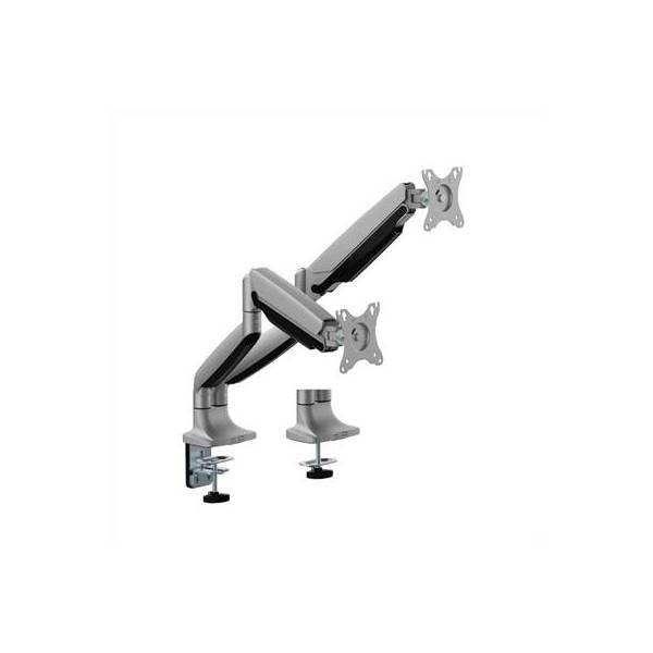 | Características | - Material: aluminio, acero, plástico - Color: Plata mate - Tamaño del producto: 1128 x 118 x 663 mm - Instalación: Abrazadera, Montaje en escritorio - Tamaño de pantalla sugerido: 17'-35' - Adecuado para: 2 pantallas - Capacidad de peso Monitor plano: hasta 15 Kg (cada monitor) - Capacidad de peso Monitor curvo: hasta 12 Kg (cada monitor) - VESA: 100 x 100, 75 x 75 - Puntos de pivote: 3 - Inclinación: +90°~-90° - Giratorio: +90°~-90° - Girar: 360° - Extensión del brazo: 536 mm - Grosor de la abrazadera: 10 mm-80 mm. - Altura ajustable libremente: Sí (resorte mecánico) - Gestión de cables: Sí |