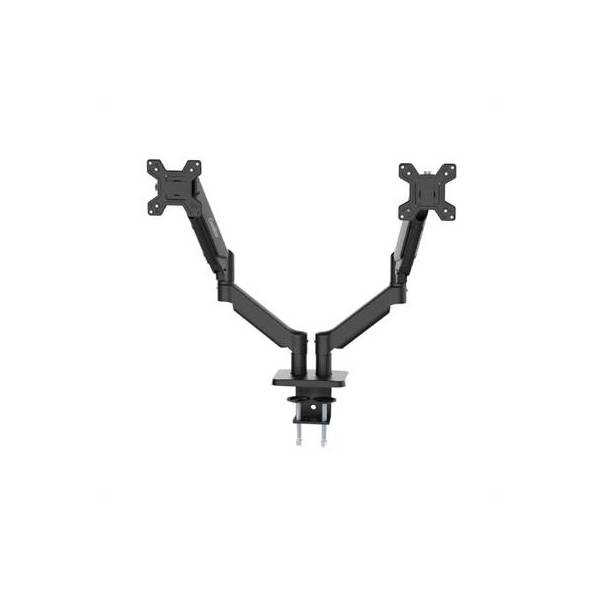 | Características | - Gestión de cables integrada - Material: Acero, plástico - Color: Negro mate - Pantalla compatible: Hasta 32' - Cantidad de pantallas: 2 - Peso soportado por brazo: 8 Kg - Compatibilidad VESA: 75 x75 y 100 x 100 - Regulación de altura: Sistema neumático (gas) - Inclinación y rotación: Rango de inclinación: 90º (-45º ~ +45º) Rango de giro: 180º (-190º ~ +90º) Rotación de pantalla: 360º - Sistema de instalación: Abrazadera Dimensiones y peso - Extensión del brazo 360 mm - Altura del mastil 400 mm - Peso: 4,25 Kg Contiene - Soporte de monitor (desmontado) - Tornillería - Llaves Allen para montaje - Instrucciones de montaje |