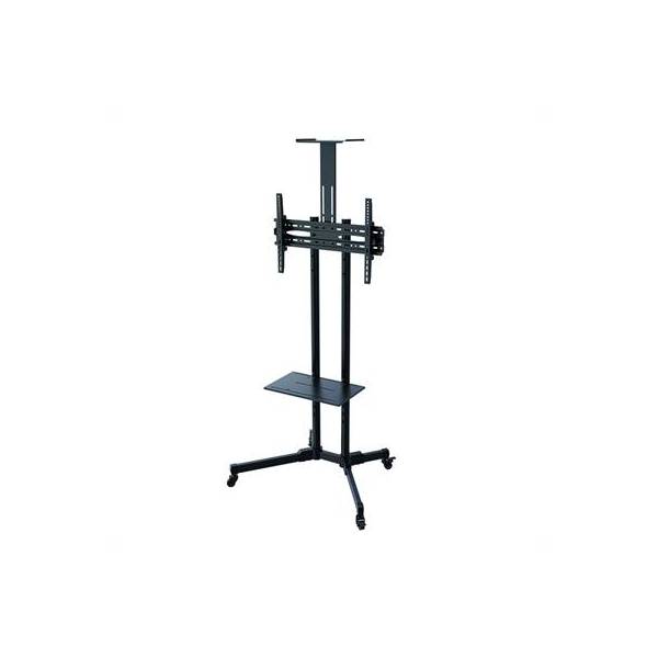 | Caracteristicas | - Pantallas soportadas: 37"-70" - Compatible con VESA: Máximo 600x400. Mínimo 200x200 - Peso máximo soportado de pantalla: 50 kg - Ángulo de inclinación: +10°/-10° - Bandejas regulables para reproductor/DVD y para cámara en la parte superior - Rango de ajuste para la altura de soporte: 1290-1450 mm - Altura máxima con bandeja superior: 1803 mm - Medidas de bandejas: Inferior 485x293 mm. Superior: 298x228 mm - Distancia entre ruedas: 880x665 mm - Ruedas con sistema de bloqueo - Sistema de organización de cables - Color: Negro - Peso neto: 14,70 kg. Peso bruto: 16,60 kg - Medidas del embalaje: 1520x340x150 mm Contenido - 1 x Soporte con dos bandejas - 1 x Kit de montaje (incluye herramientas) - 1 x Manual de instalación |