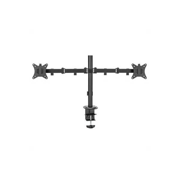 | Características | - Monitores soportados: 17' - 32' - VESA: 75x75 y 100x100 - Peso máximo soportado: 9 kg por brazo - Ángulos: Inclinación: +45°/-45° Giro: +90°/-90° Rotación: +180°/-180° - Altura: ajustable hasta 407 mm - Extensión máxima de los brazos: 441 mm - Instalación mediante abrazadera o tornillo pasante - Apertura abrazadera: 1 a 8,5 cm - Profundidad tornillo pasante: 1 a 4 cm - Color: negro - Peso neto: 3,45 kg - Peso bruto: 5 kg - Medidas (embalaje): 426 x 107 x 187 mm - Incluye manual, tornillería e instrucciones de instalación - Cumple especificaciones RoHS |
