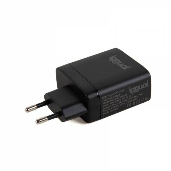 | Características | - Cargador rápido de pared - Tecnología Power Delivery - Puerto de salida: USB PD tipo c - Entrada: 100-240V AC, 50-60 Hz - Salida: 5V-2.4A 12W / 9V-3A 27W / 15V-3A 45W / 20V-2.25A 45W |