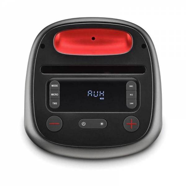 | Características | - Potencia de salida: 80W - Compatible con bluetooth 5.0 - True Wireless Stereo - Luces LED - Entrada de audio USB hasta 64GB - Entrada de audio TF hasta 64GB - Entrada auxiliar - Entrada de micrófono - Pantalla LED - RMS:40W - Batería: 7.4V/3600mAh - DSP (Digital Signal Processor) - Formatos de audio: MP3/WMA |
