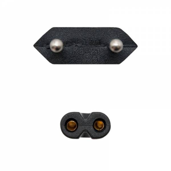 | Características | - Conector CEE 7/16 macho en un extremo y C7 hembra(No Polarizado) en el otro. - Longitud: 1.5 metros - Test de funcionamiento: 100% testado - Normativas: RoHS - Color: Negro Contenido - 1 x Cable alimentación forma 8, CEE7/16/M-C7/H, negro, 1.5m |