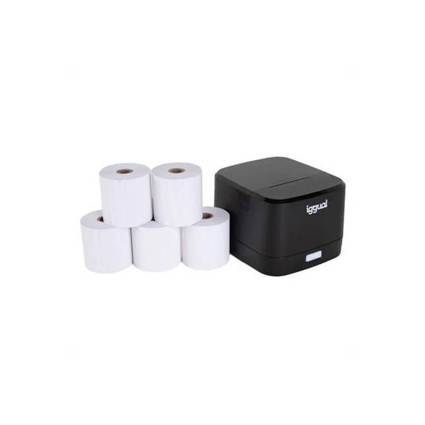 Rendimiento y practicidad se unen en este pack de iggual, que combina la impresora térmica TP EASY 58 con 5 rollos de papel térmico 100 % libres de bisfenol A. Una solución lista para funcionar desde el primer momento, pensada para entornos de venta que valoran la eficiencia, la fiabilidad y el ahorro.