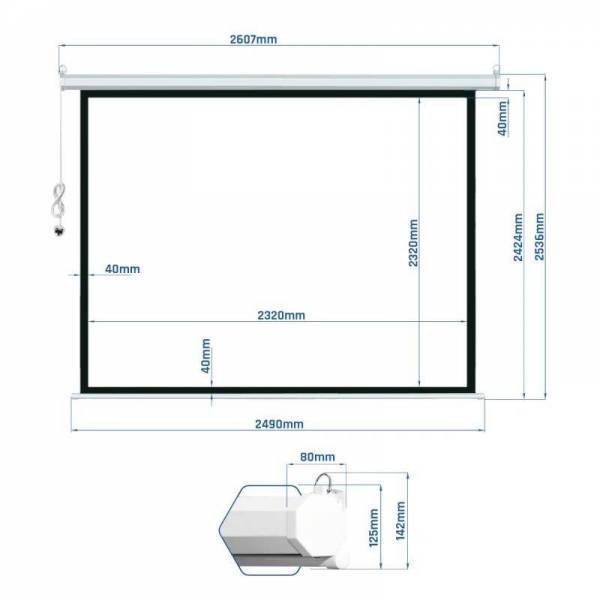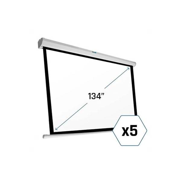 | Características | - Pack de 5 - Área visible de 240 x 240 cm. (Bordes incluídos) - Bordes negros de 4 cm - Carcasa blanca y a prueba de polvo - Apto para pared y techo - Parte trasera en negro para mayor refracción de la luz - Muy buena planeidad y tensión gracias al grosor de la tela - Voltaje 230 VAC- Frecuencia 50Hz - Salida del cable de alimentación por el lado izquierdo visto desde frente de la pantalla - Incluye control de pared y mando remoto infrarrojo (IR) - Factor de ganancia de 1.2, ideal para cine en casa y presentaciones - La caída de la pantalla puede ser frenada en cualquier punto, por lo que se puede ajustar la longitud de la pantalla a cualquier formato. - La barra inferior queda al ras con la carcasa - Ideal para cualquier tipo de proyector, SVGA, XGA, 3D, HD, Full HD y 4K |
