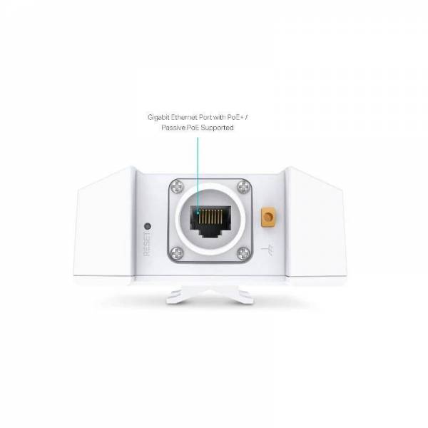 | Especificaciones | - Botones: Reset - Fuente de Alimentación: PoE 802.3at PoE pasivo de 48 V (adaptador PoE incluido) - Consumo de Potencia: UE: 12,5 W (802.3at PoE o PoE pasivo) EE. UU.: 14,7 W (802.3at PoE o PoE pasivo) - Antenas 2.4 GHz: 2× 4 dBi 5 GHz: 2× 5 dBi |
