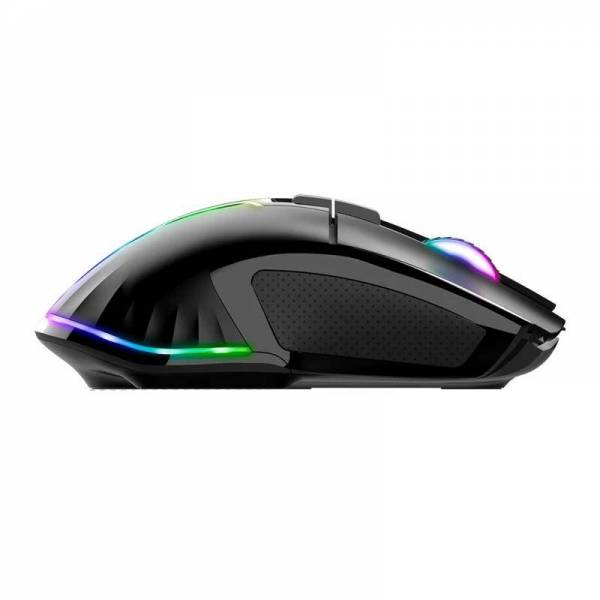 | Características | - Resolución: 8 000 DPI - El sensor: Óptico - Botones: 8 programables - Batería: Autonomía Batería de litio recargable 600 mAh - Software: Puede ser descargado - Distancia de funcionamiento: 6 - 10 m - Compatibilidad: Windows XP y versiones posteriores - Luz trasera: 7 efectos RGB dinámicos - Conexión: Triple modo Dimensiones y peso - 12,5 x 8,4 x 4,6 cm - 146 g Contenido - Dispositivo USB - Guía de instalación rápida - Ratón PRO-M5 RGB |