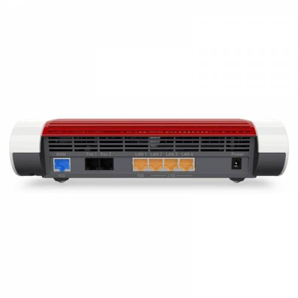 | Conexiones | - 1 × puerto WAN de 10 gigabits - 1 × puerto LAN de 10 gigabits - 3 × puertos LAN de 2,5 gigabits - Wi-Fi 7 - 1 x puerto USB 3.0 para conectar un dispositivo de almacenamiento, una impresora o un módem USB - Base DECT para dispositivos de domótica y hasta 6 teléfonos inalámbricos - 2 x teléfonos |