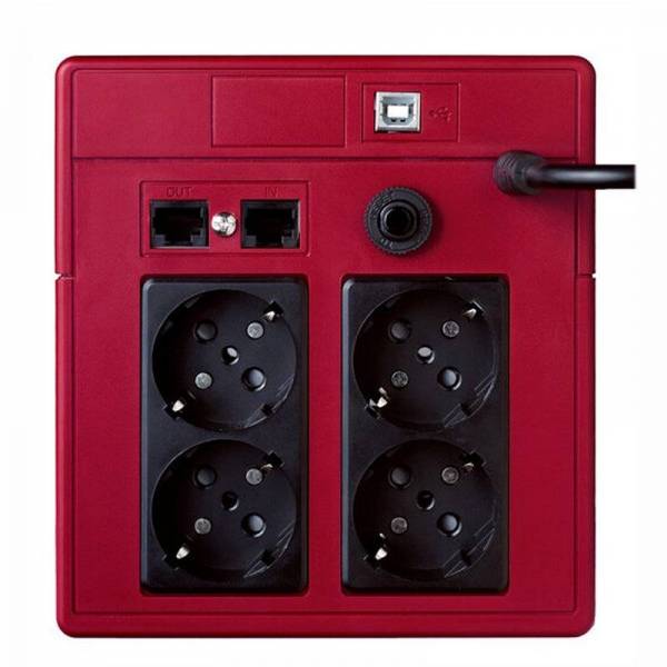 | Salida | - Tensión nominal: 220 V / 230 V / 240 V AC - Precisión tensión (modo batería): ±10% - Potencia (VA/W): 1100 / 600 - Forma de onda (modo batería): Pseudosenoidal - Frecuencia: 50 / 60 Hz ± 1 Hz - Tiempo de transferencia: 2 / 6 ms - Tipo de tomas: Schuko - Nº salidas: 4 |