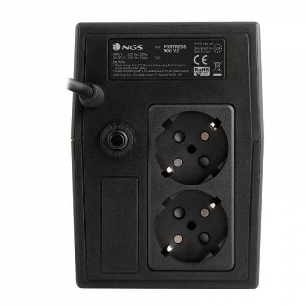 | Características | - SAI off-line de 600 VA con batería incorporada. - Proporciona energía temporal a la batería durante un cortocircuito y protección contra sobrecargas. - Evita la pérdida de datos y los daños en el hardware. - 2 tomas de corriente de pared con batería y protección contra sobretensiones. - Salidas protegidas contra sobretensiones para evitar daños por sobretensiones, picos y fluctuaciones. - Función AVR para asegurar una tensión de salida estable. - Alertas sonoras cuando se corta la electricidad. - El tiempo para guardar tus archivos y apagar el ordenador varía de 5 a 10 minutos. - Supresión de sobretensiones y filtrado de ruido a tiempo completo. - Controlado por microprocesador totalmente digitalizado. - Ahorro de energía (modo de reposo del SAI). - Encendido en frío (tensión CC conectada). - Protección integrada contra sobrecargas, descargas y cortacircuitos. Contenido - Fortress 900 V2 - Cables - Manual de usuario (6 idiomas) |