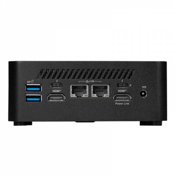 | Puertos E/S | Frontales - 1 x Entrada de micrófono/Salida de auriculares Combo1 - 2 x USB 10 Gbps Tipo A2 - 1 x Lector de tarjetas Micro-SD Laterales - 1 x ranura para interruptor de alimentación externo - 1 x ranura para candado Kensington Traseros - 2 x USB 10 Gbps Tipo A - 1 x salida HDMI (compatible con 4K a 60 Hz, según lo especificado en HDMI 2.1) - 2 x RJ45 LAN (2.5G) - 1 x salida HDMI (compatible con 4K a 60 Hz, según lo especificado en HDMI 2.1) compatible con MSI Power Link - 1 x conector CC - 1 x Thunderbolt 4 (DP 1.4 modo alternativo hasta 4K a 60 Hz / salida PD 10.15 W) - 1 x Thunderbolt 4 (DP 1.4 modo alternativo hasta 4K a 60 Hz / salida PD 11.15 W / entrada PD hasta 100 W) |