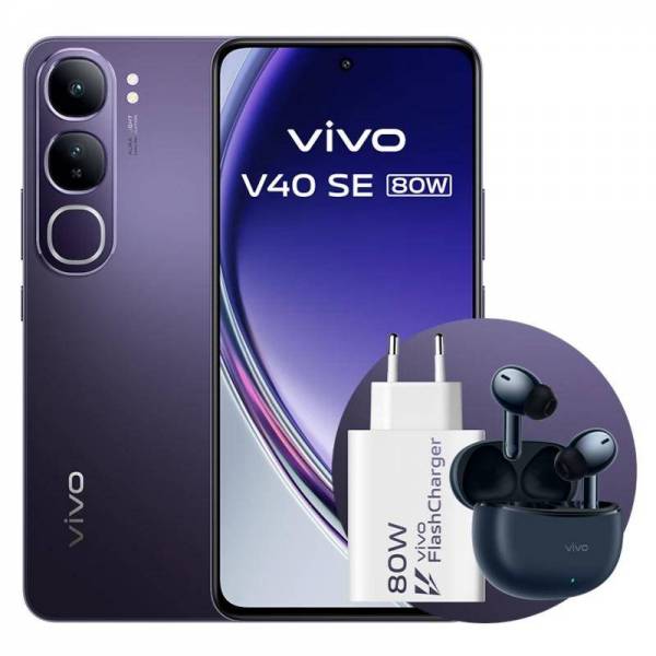 Otras características | - GPS: GPS, BeiDou, GLONASS, Galileo, QZSS - Material de la cubierta trasera: Resina sintética Sensores - Acelerómetro - Sensor de luz ambiental - Brújula digital - Sensor de proximidad - Vibración - Giroscopio Multimedia - Reproducción de audio: AAC, WAV, MP3, MIDI, VORBIS, APE, FLAC - Reproducción de vídeo: MP4, 3GP, AVI, FLV, MKV, WEBM, TS, ASF - Grabación de voz - Grabación de vídeo: MP4 Seguridad - Sensor de huella dactilar óptico en pantalla Batería - Capacidad típica: 5000 mAh (3,91 V) - Potencia de carga: 80 W - Tipo de batería: Batería de iones de litio Dimensiones - 163,23 × 75,93 × 7,79 mm - 188 g Contenido - Modelo V40 SE 80 W - Cargador 80w *Caja independiente - Auriculares *Caja independiente - Guía de inicio rápido - Cable USB - Funda de teléfono - Lámina protectora de pantalla (aplicada) - Herramienta para extraer la SIM |